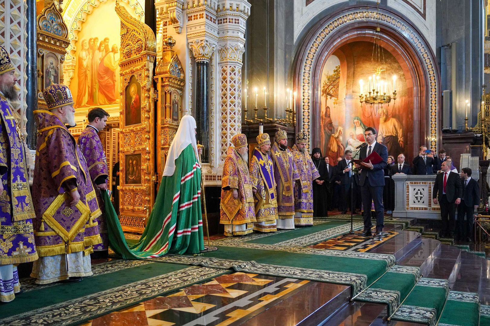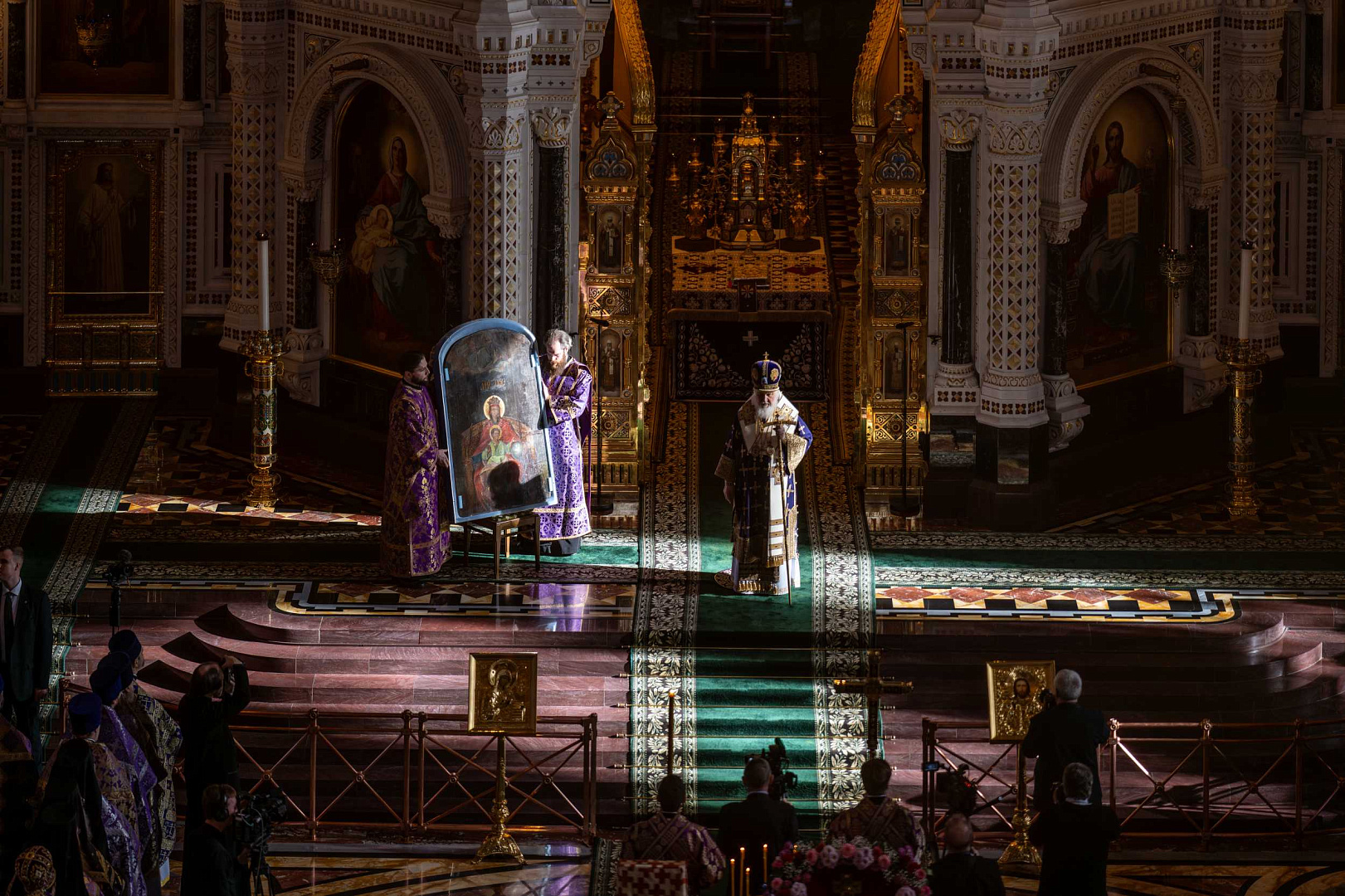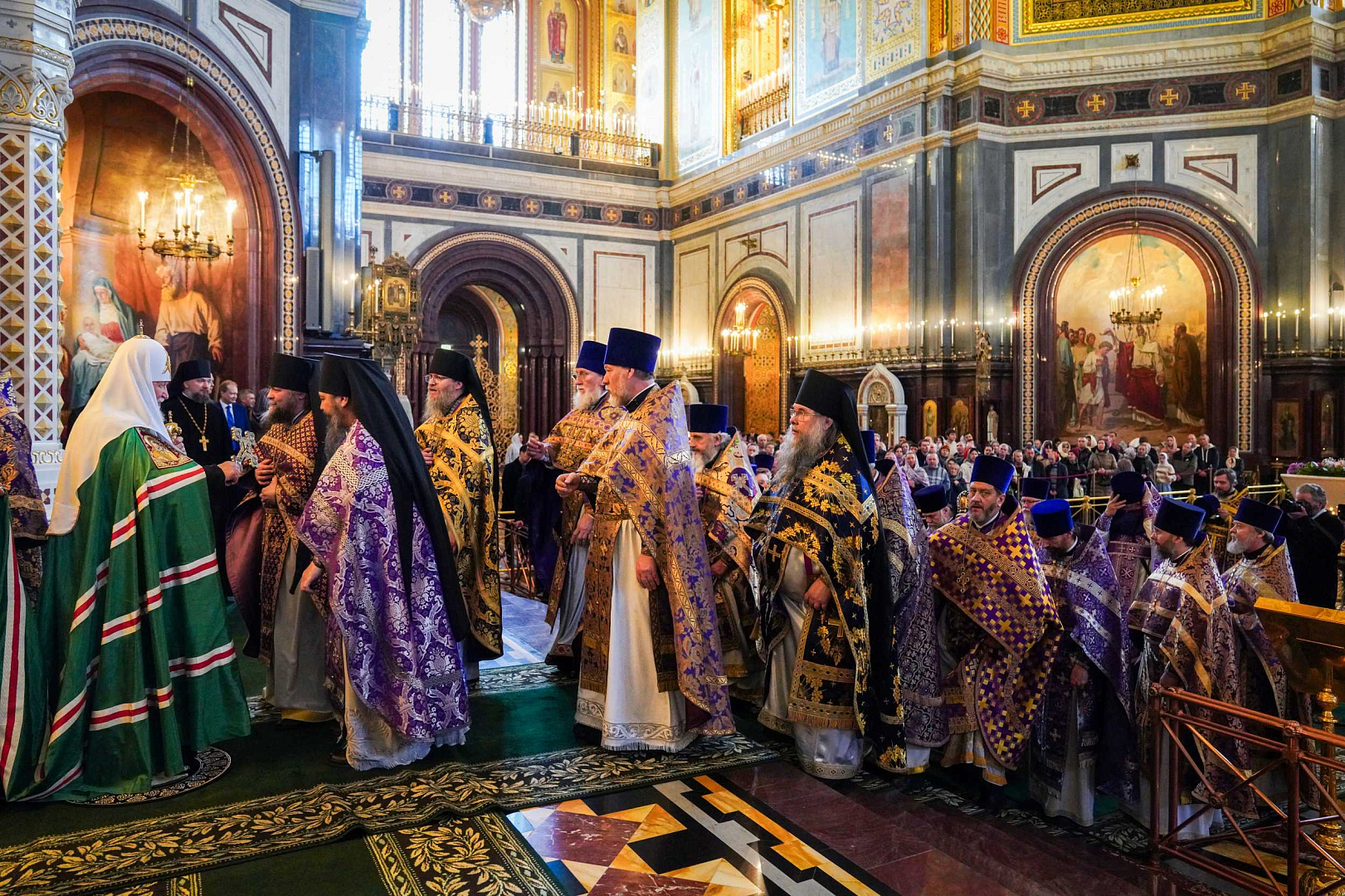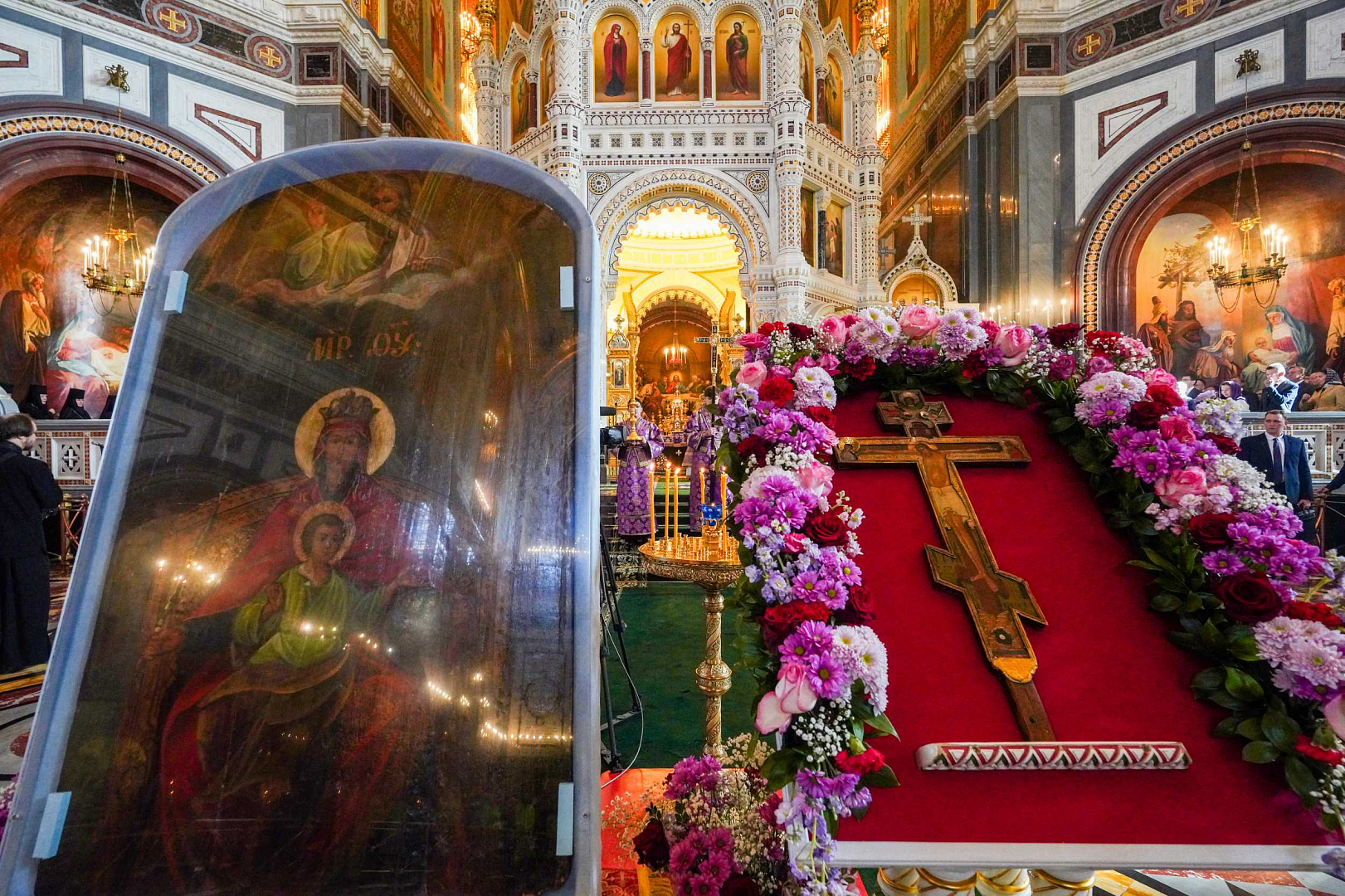 В Неделю Крестопоклонную Предстоятель Русской Церкви совершил Литургию в Храме Христа Спасителя