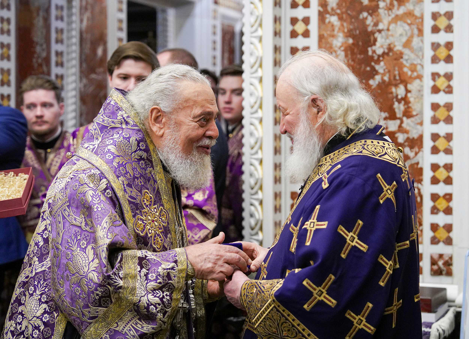 Ваше Святейшество! Мы, представители Поместных Православных Церквей, живя под Вашим омофором, стараемся подражать Вашим преданности Церкви и служению народу. Сегодня, поздравляя Вас с золотым архиерейским юбилеем, мы молим Господа, чтобы он укрепил Вас в добром здравии и даровал Вам благодать в изобилии для дальнейшего служения Святой Русской Церкви и всего Православия.