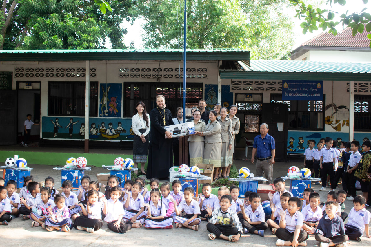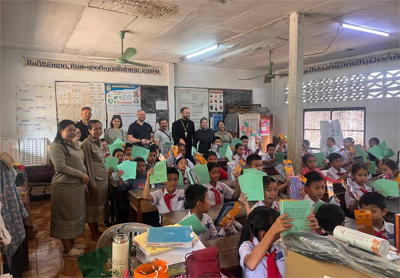 Служба коммуникации ОВЦС, 20.03.2026. 16 марта 2026 года по благословению Патриаршего экзарха Юго‑Восточной Азии митрополита Сингапурского и Юго‑Восточно‑Азиатского Сергия, временно управляющего Таиландской епархией, настоятель храма святого благоверного князя Александра Невского в г. Вьентьяне (Лаос) иерей Дмитрий Лаврентьев вместе с прихожанами посетил младшую школу, расположенную рядом с приходом.