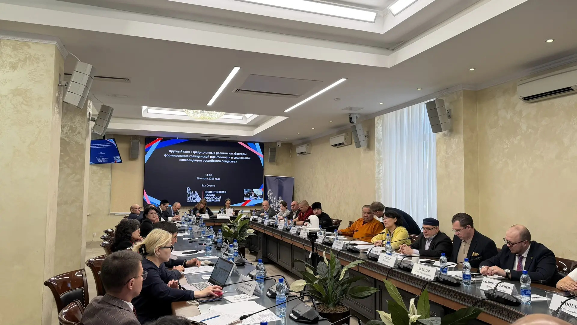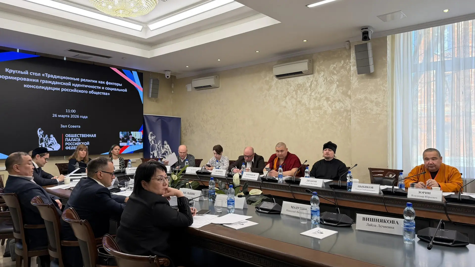 Служба коммуникации ОВЦС, 27.03.2026. 26 марта в Москве в Общественной палате Российской Федерации состоялось заседание круглого стола «Традиционные религии как факторы формирования гражданской идентичности и социальной консолидации российского общества», приуроченный к Году единства народов России. Организатором мероприятия выступили Комиссия Общественной палаты РФ по межнациональным, межрелигиозным отношениям и миграции, Буддийская традиционная сангха России, Региональная общественная организация поддержки буддийских женщин, их семей и сохранения буддийской культуры «Союз буддийских женщин», Некоммерческая организация «Фонд содействия буддийскому образованию и исследованиям», Централизованная религиозная организация «Международная исламская миссия».