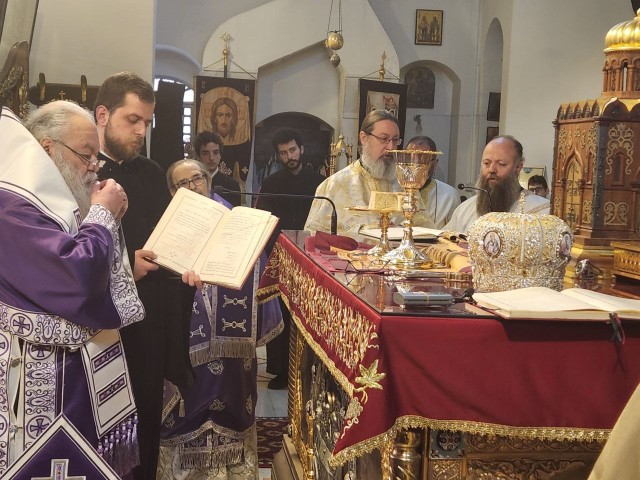 Служба коммуникации ОВЦС, 30.03.2026. 29 марта, в Неделю 5-ю Великого поста, по приглашению Блаженнейшего Патриарха Великой Антиохии и всего Востока Иоанна X представитель Патриарха Московского и всея Руси при Антиохийском Патриаршем престоле архимандрит Филипп (Васильцев) принял участие в Утрени и Божественной литургии в Успенском кафедральном соборе города Дамаска.