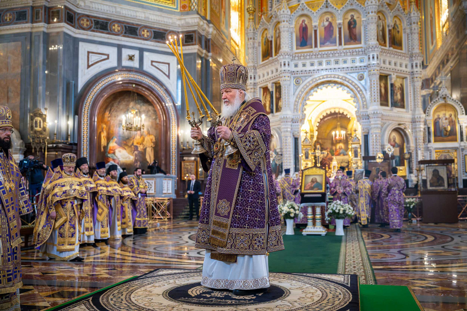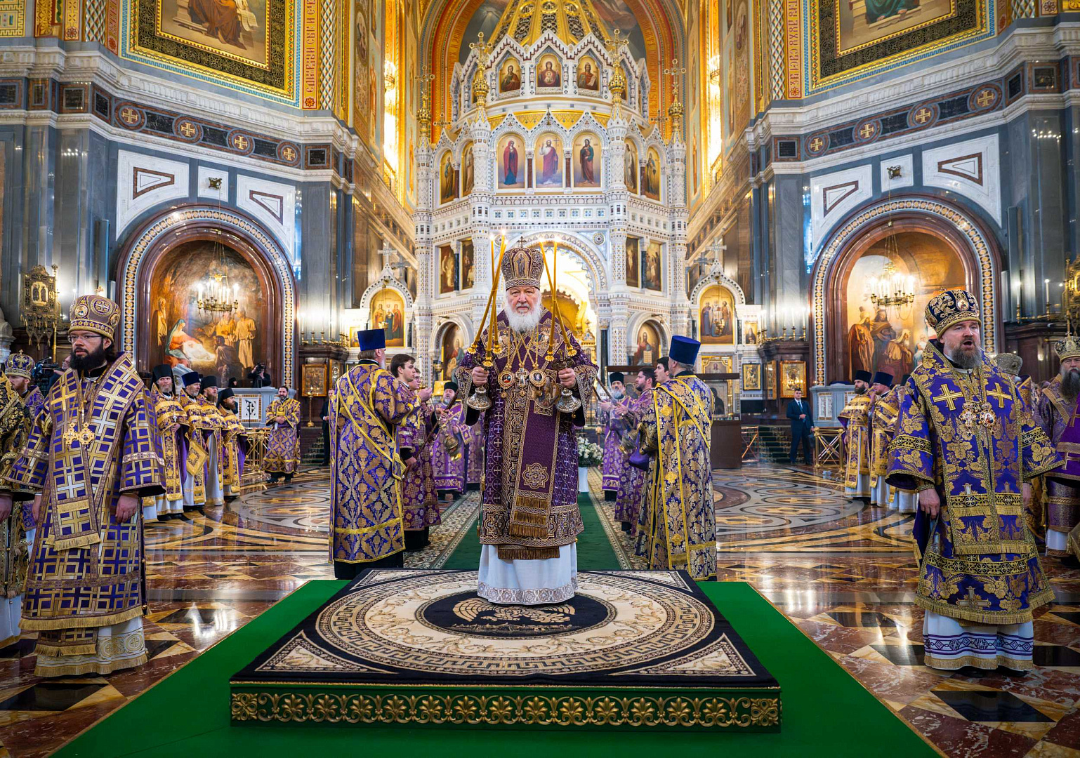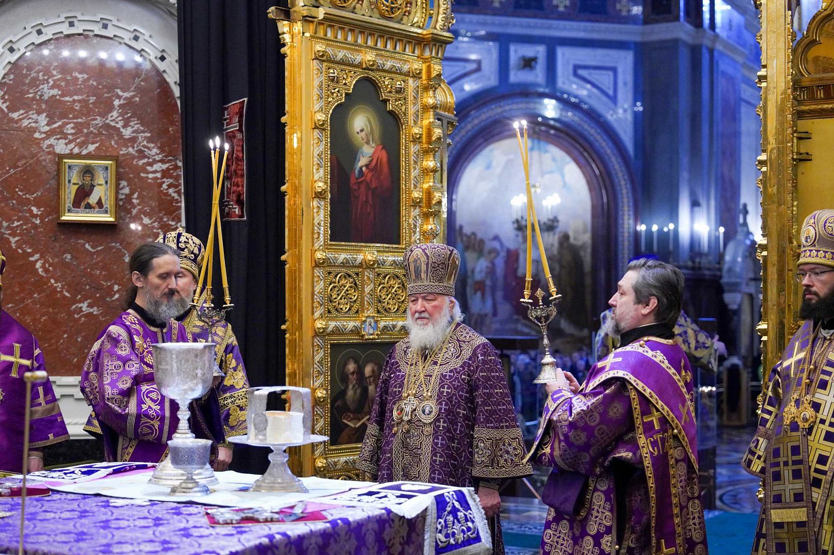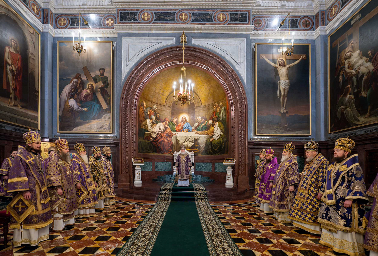 В четверг Страстной седмицы Предстоятель Русской Церкви совершил Литургию в Храме Христа Спасителя