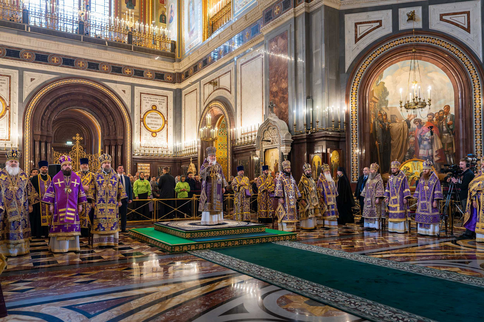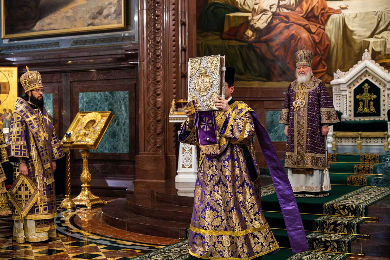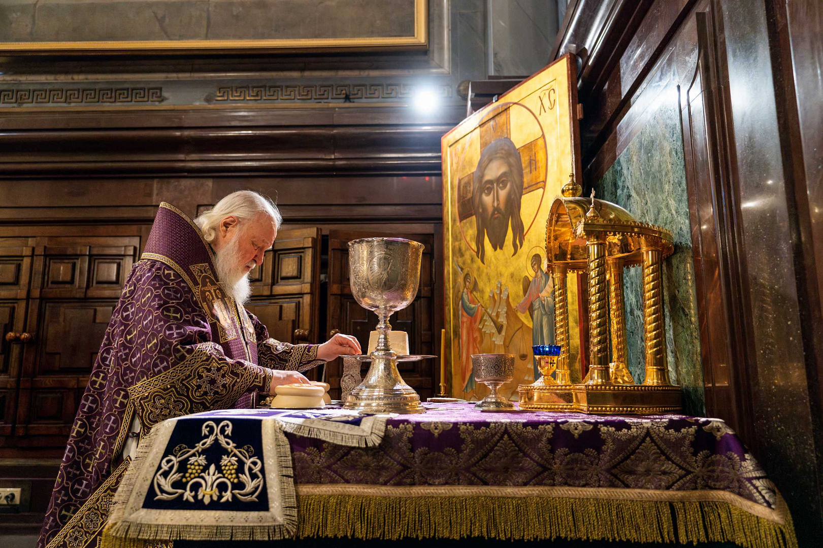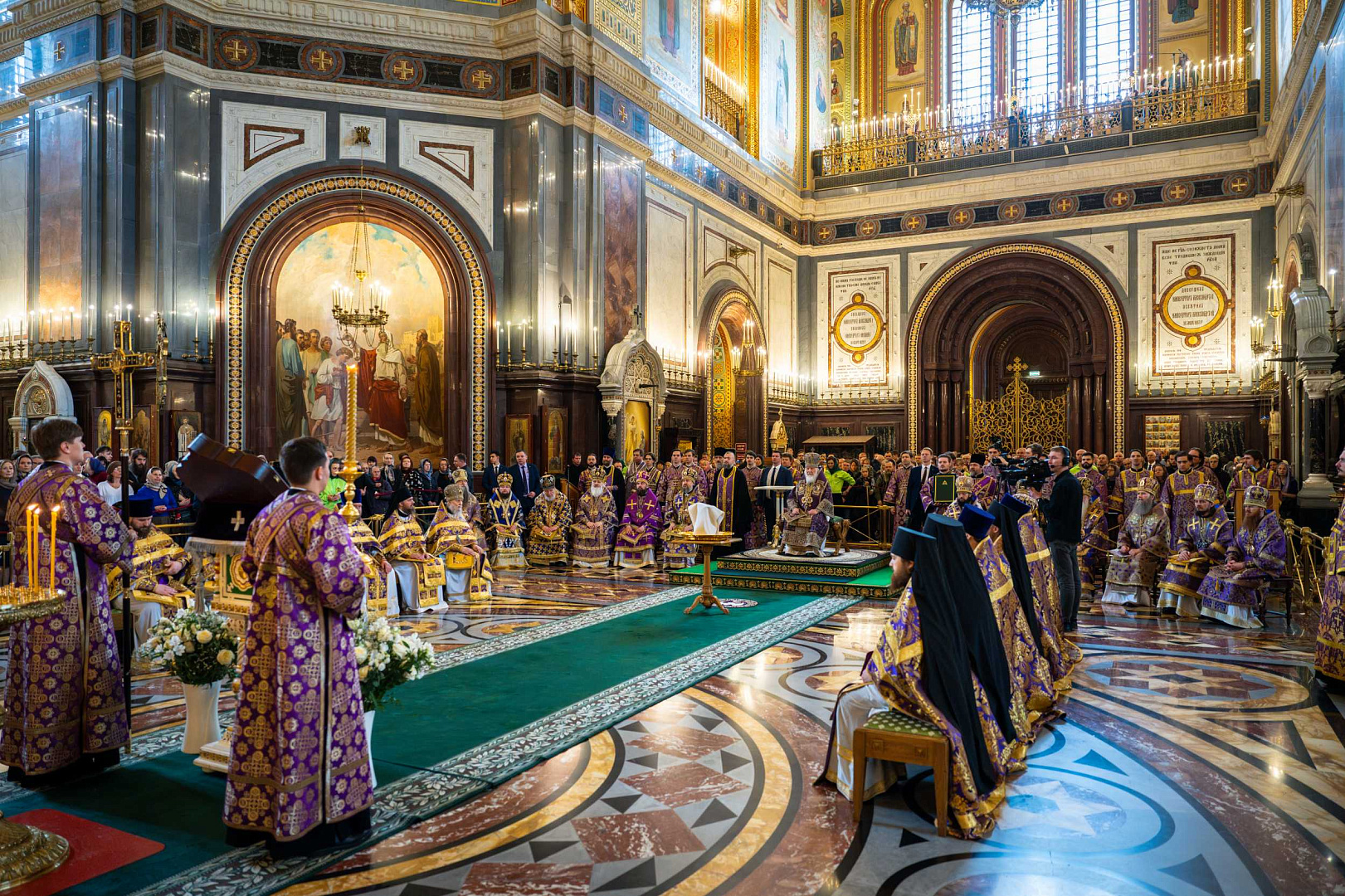 В четверг Страстной седмицы Предстоятель Русской Церкви совершил Литургию в Храме Христа Спасителя
