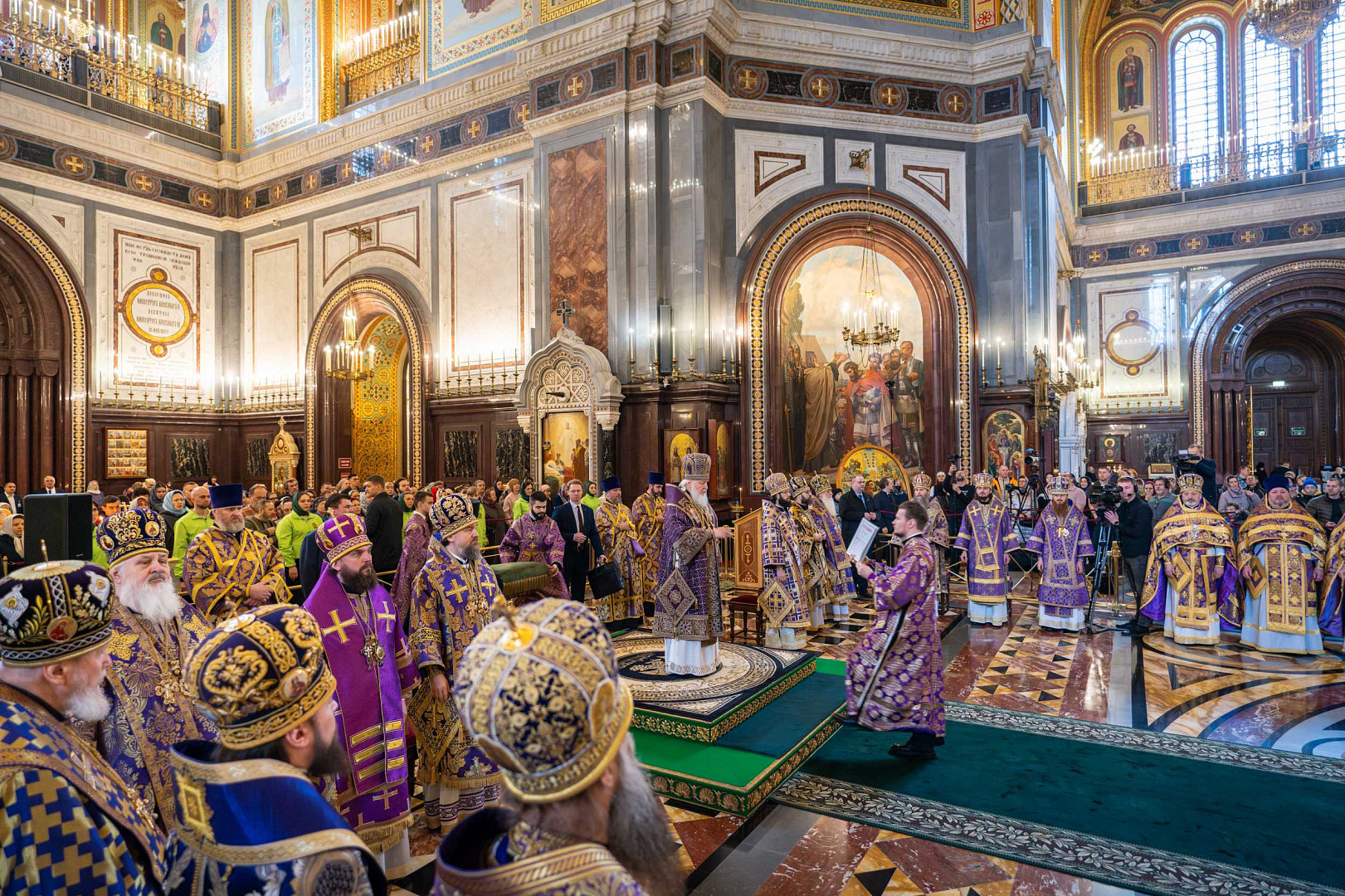 На сугубой ектении были вознесены особые прошения, Предстоятель Русской Церкви прочитал молитву о Святой Руси.