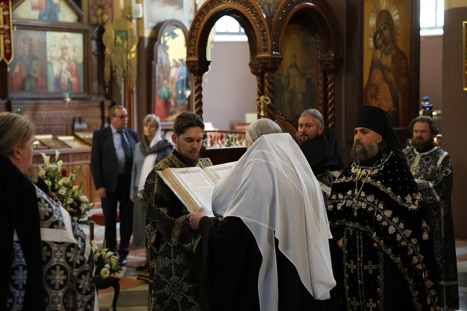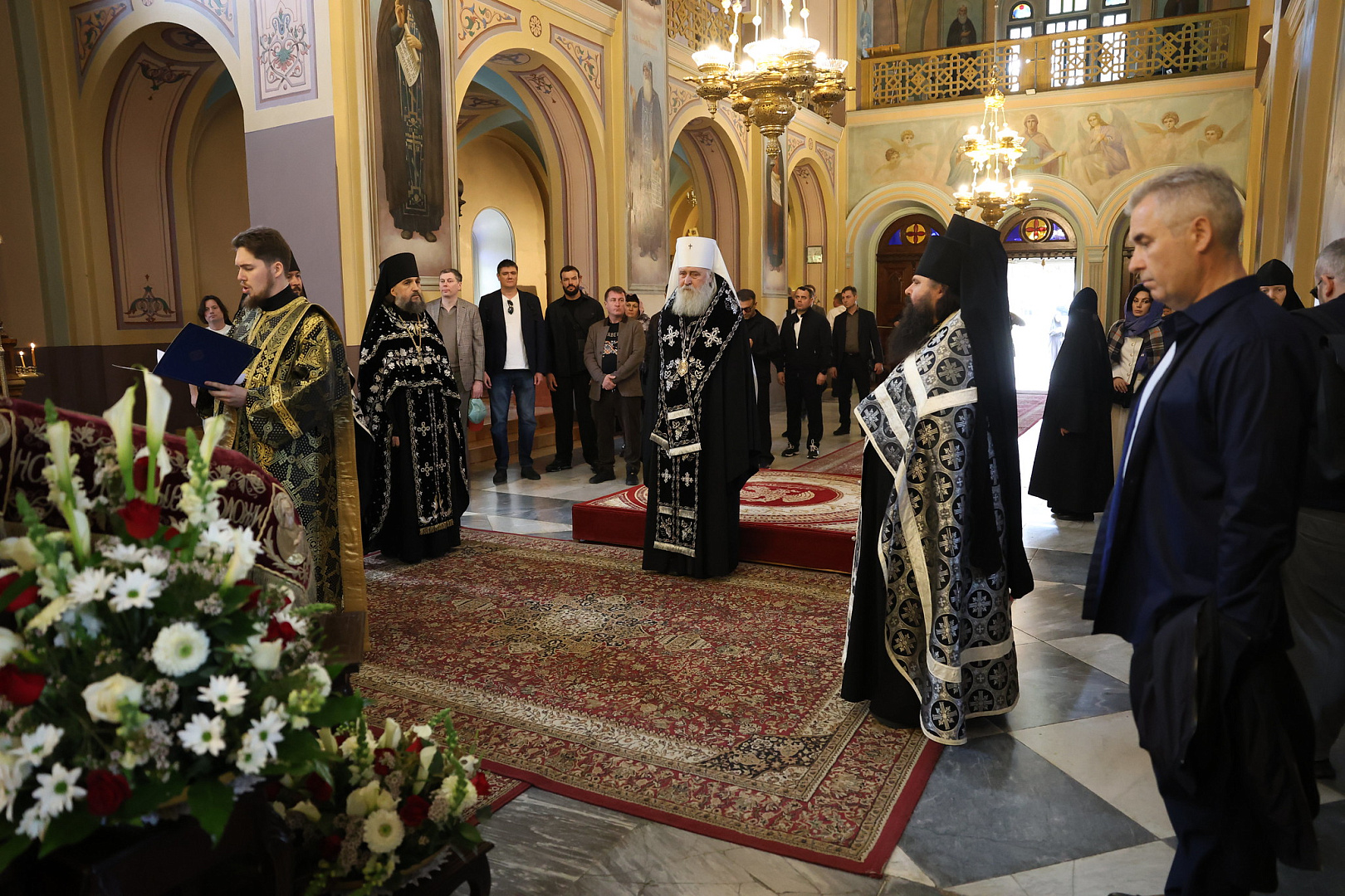 Архимандрит Вассиан также приветствовал митрополита Феогноста, председателя попечительского совета Фонда Андрея Первозванного В.И. Якунина и всех паломников в составе делегации Фонда.