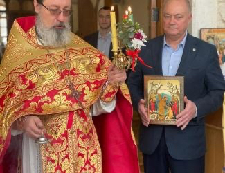 Настоятель Подворья Русской Православной Церкви сердечно приветствовал владыку Силуана, поблагодарил его за совместное богослужение и преподнёс пасхальный кулич.