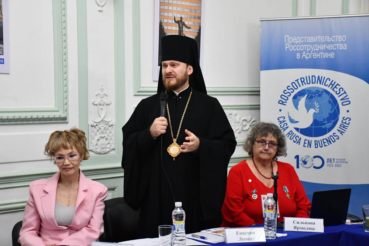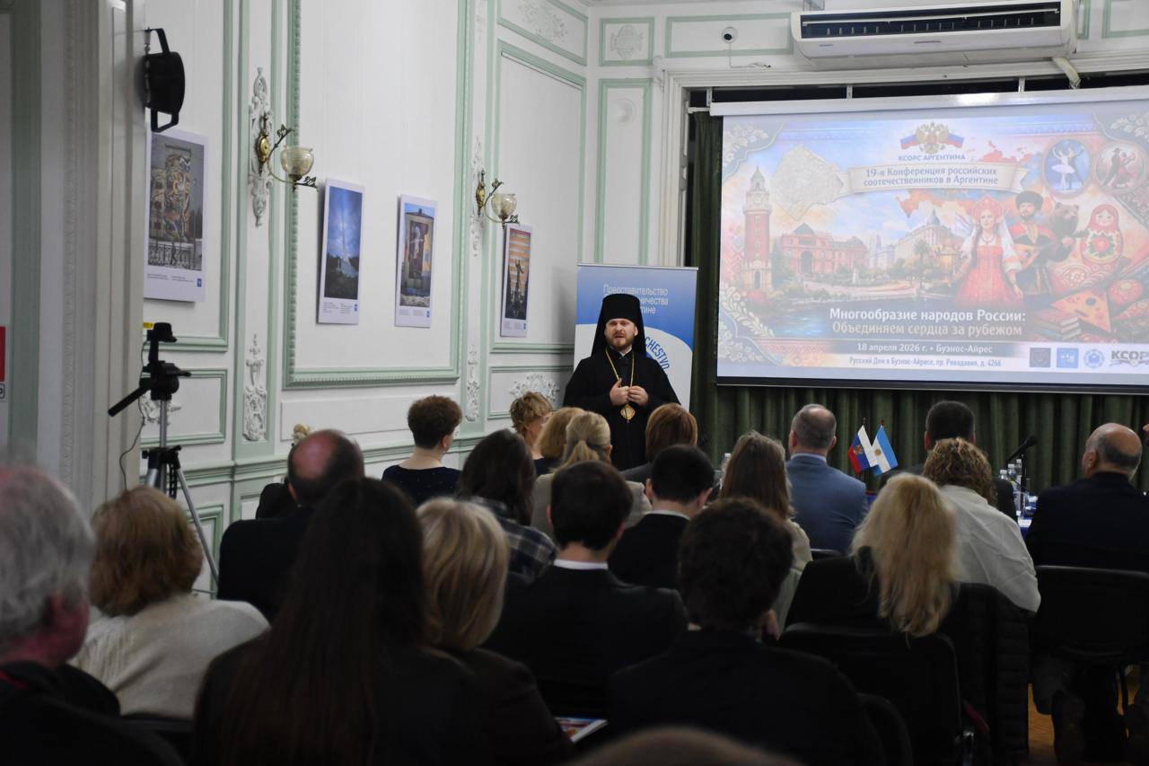 Служба коммуникации ОВЦС, 20.04.2026. 18 апреля епископ Аргентинский и Южноамериканский Леонид принял участие в XIX Конференции организаций российских соотечественников в Аргентине «Многообразие народов России: объединяем сердца за рубежом».