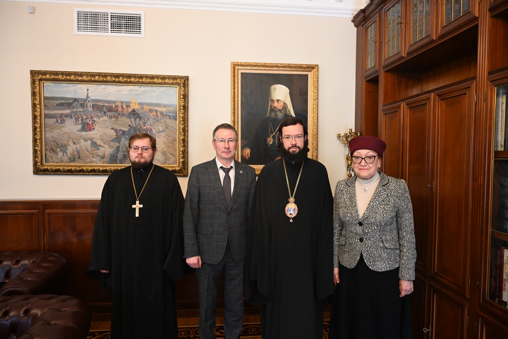 Служба коммуникации ОВЦС, 21.04.2026. 21 апреля 2026 года в Отделе внешних церковных связей Московского Патриархата состоялась встреча председателя ОВЦС митрополита Волоколамского Антония с помощником Раиса Республики Татарстан, заместителем председателя Группы стратегического видения «Россия – исламский мир» М.И. Гатиным.