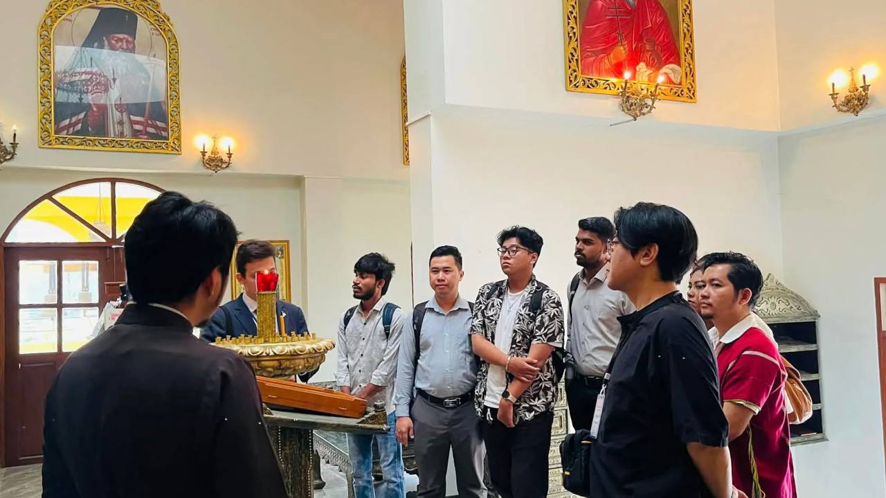 Гости присутствовали на Божественной литургии. Настоятель храма священник Павел Срисуморо рассказал участникам визита о деятельности Русской Православной Церкви в Таиланде, познакомил с особенностями православного богослужения и вероучения.