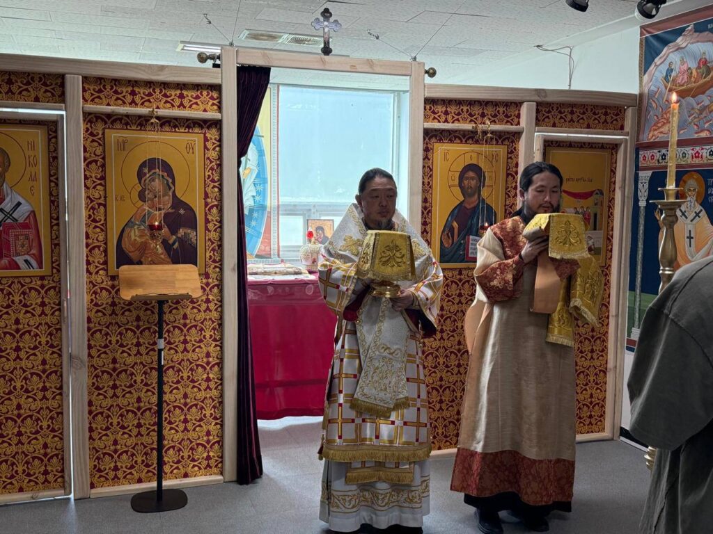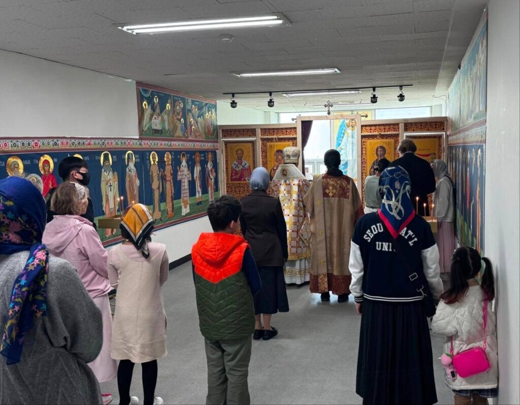 Первую Божественную литургию в новообразованном приходе совершил архиепископ Корейский Феофан. Его Высокопреосвященству сослужил иеродиакон Нектарий (Лим).